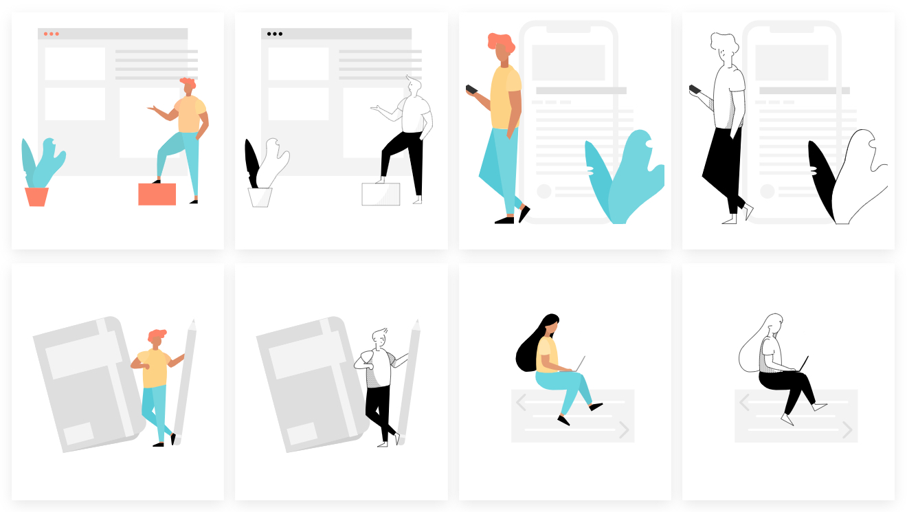 DrawKit is a collection of free, beautiful, customisable MIT licensed SVG illustrations in two styles, to use on your next website, app, or project.