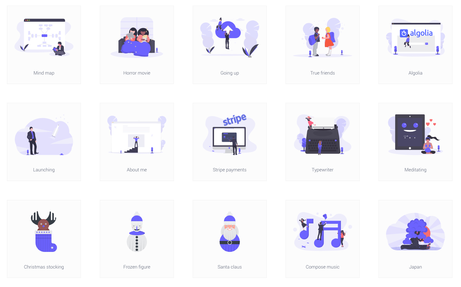 Open-source illustrations for every project you can imagine and create. Browse to find the images that fit your needs and download. Take advantage of the on-the-fly color image generation to match your brand identity.